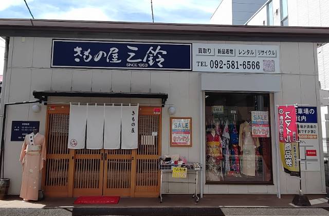 福岡県春日市にある昭和28年創業の老舗「きもの屋三鈴」は、新品・リユース着物の販売と買取を行う着物専門店です。