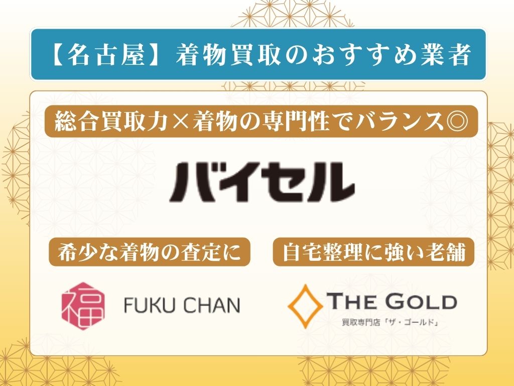 着物の買取先を名古屋市で探すなら、以下の4店舗がおすすめです。