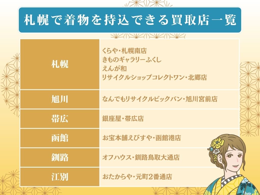 札幌には着物リサイクルに力を入れる店舗が多く、持ち込みで気軽に査定できるお店も充実しています。